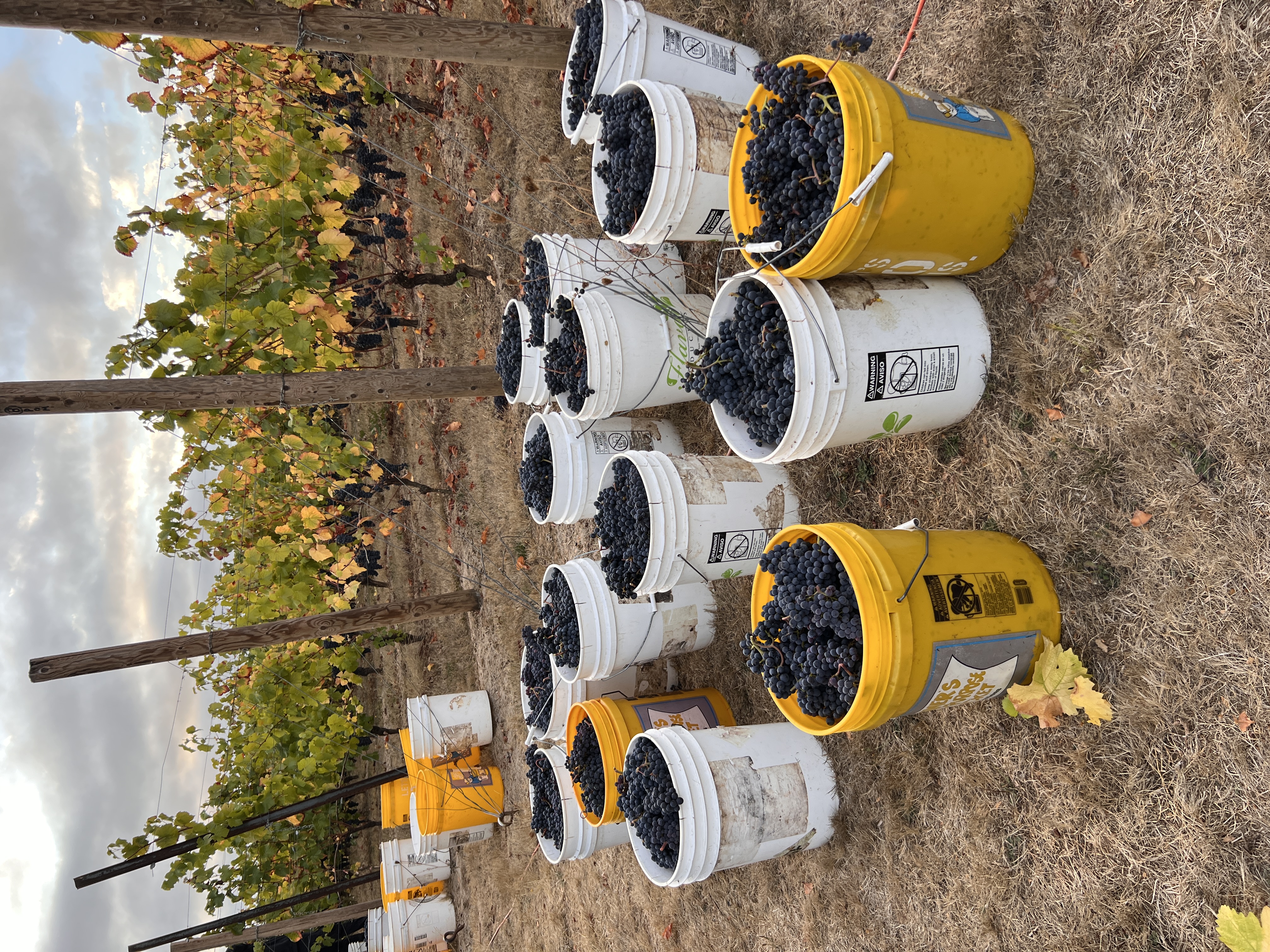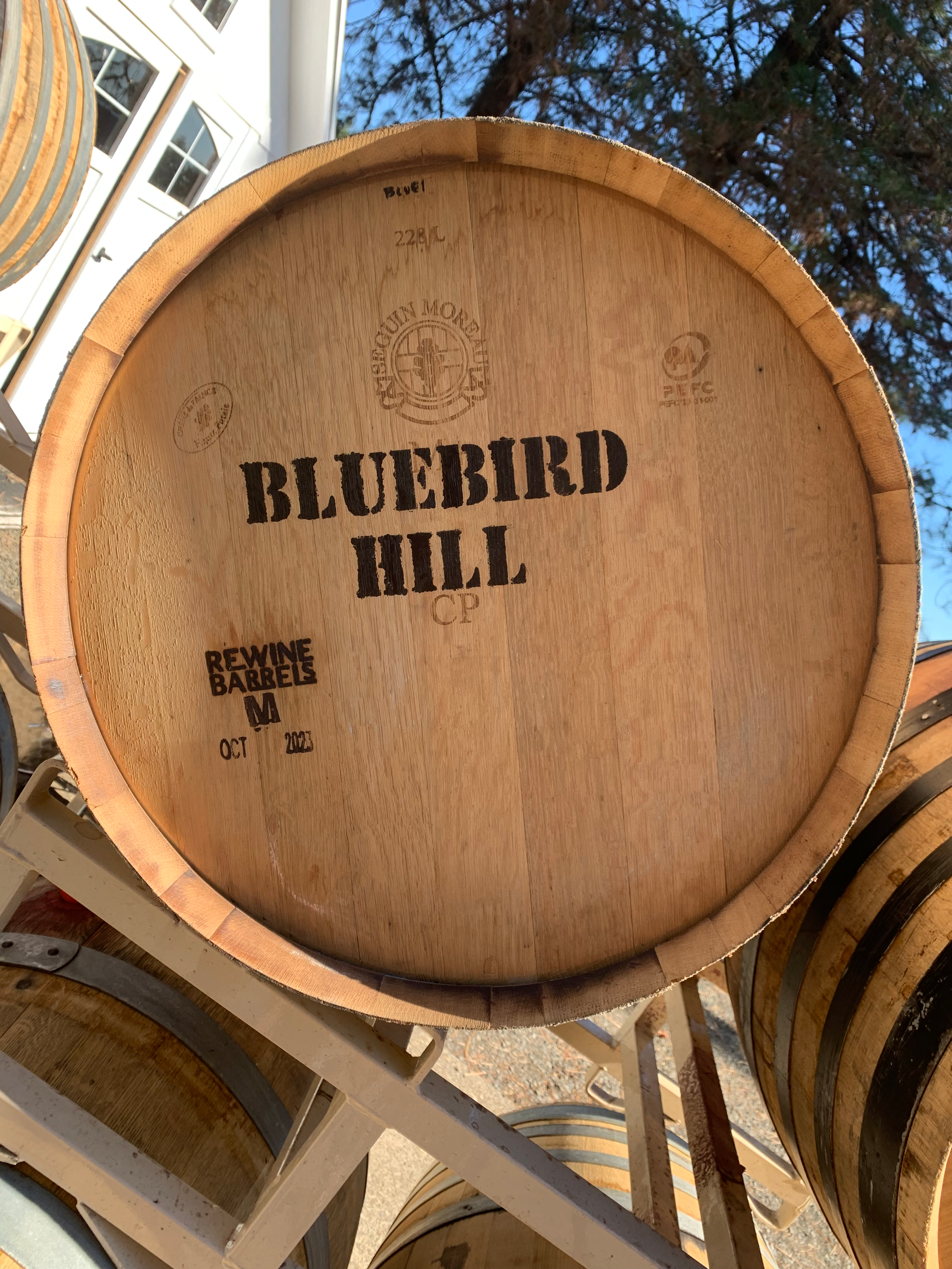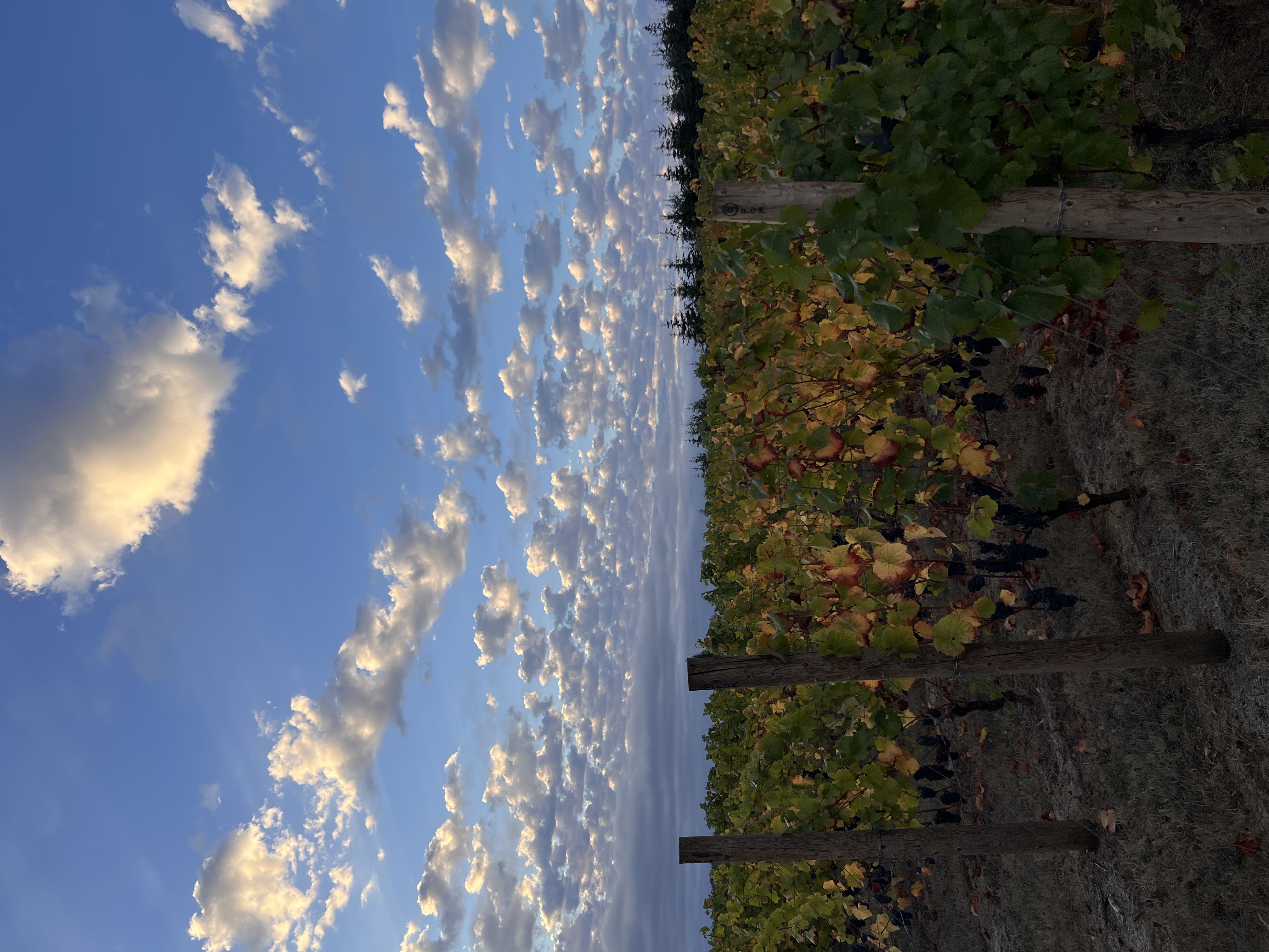 Although we wrote about retiring in our last blog post (September 6, 2024), as we alluded to in that post, nothing is happening immediately and the things that are happening are pretty typical for this time of year at home. Harvest went great, and out in the vineyard things are looking pretty wintery: most of the leaves have dropped and Neil has been out in the vineyard with the mower mulching leaves. We decided to ferment more Bluebird Hill wine in 2024, we vinified 5.5 tons of Pinot noir from our south side vineyard block, this wine is currently resting and finishing malolactic fermentation in 15 barrels at Fullerton Winery in Corvallis. Additionally, we have about 200 gallons of 2024 Estate Pinot gris that will get bottled in December or January.