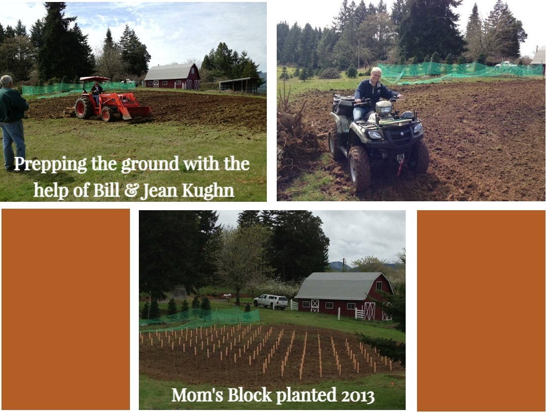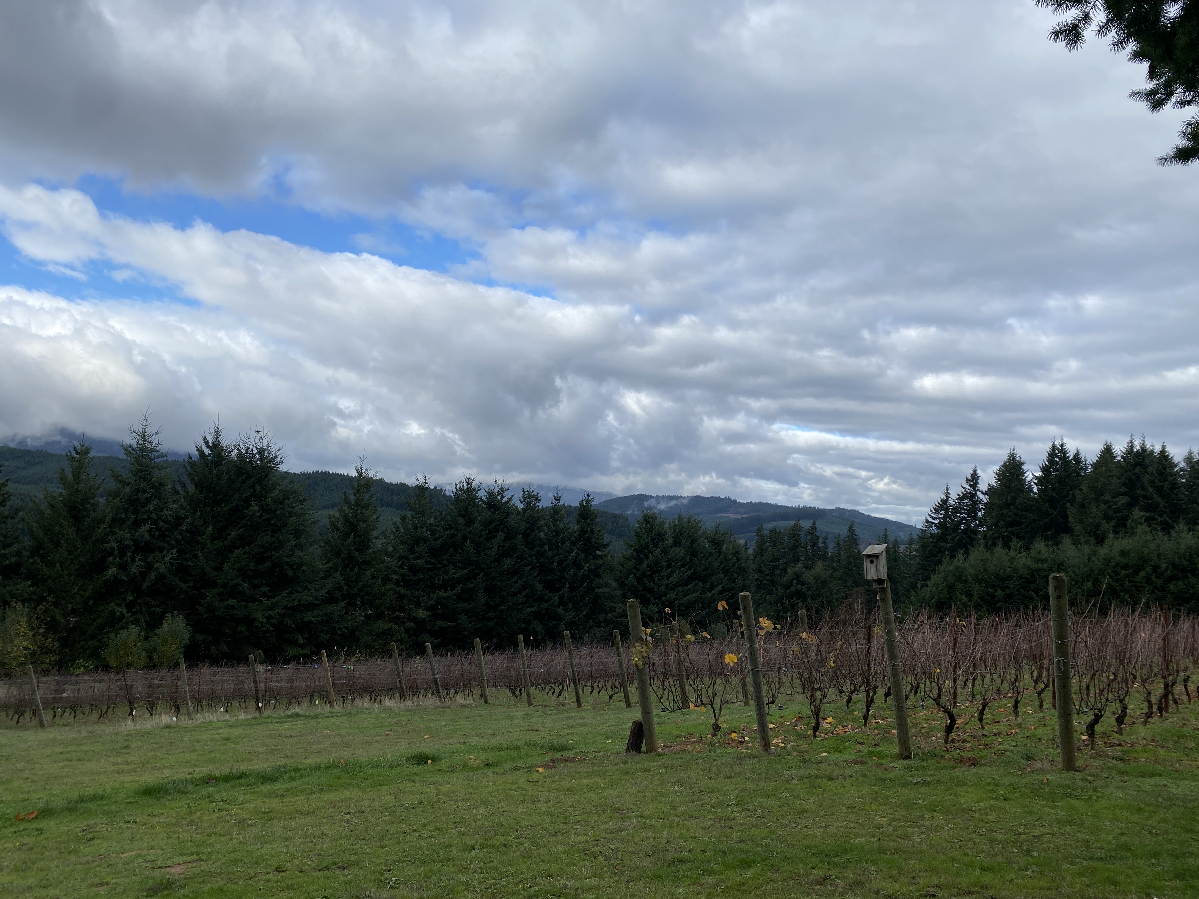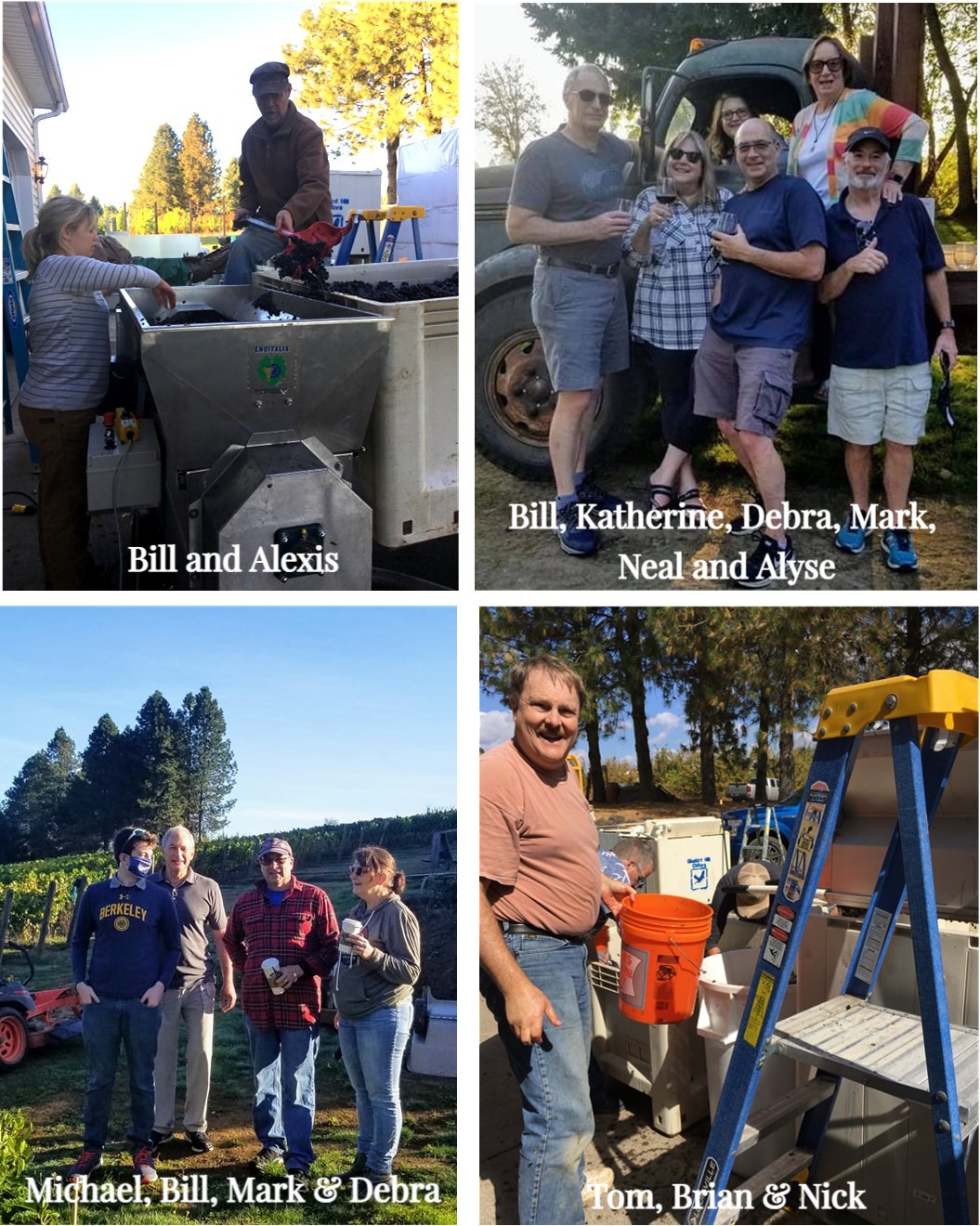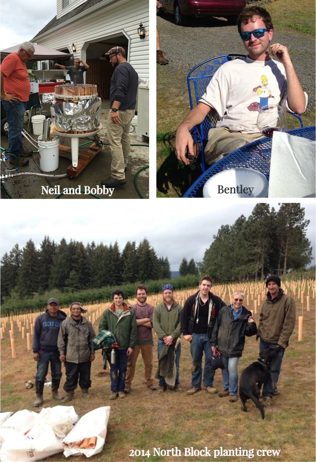 Then, over the next year or two, realizing, in 2013, that our four acres of overgrown Christmas trees had potential to be a great vineyard site… We got great business advice from local winery owners, getting Bluebird Hill off the ground with invaluable help from Bobby and a series of hard-working OSU assistants including our friend Bentley, God bless you, and a whole series of others, at the beginning with Karl, and now most recently in 2021, our “OSU Crew”, Alexis, Terran, Tommy and McKenna.