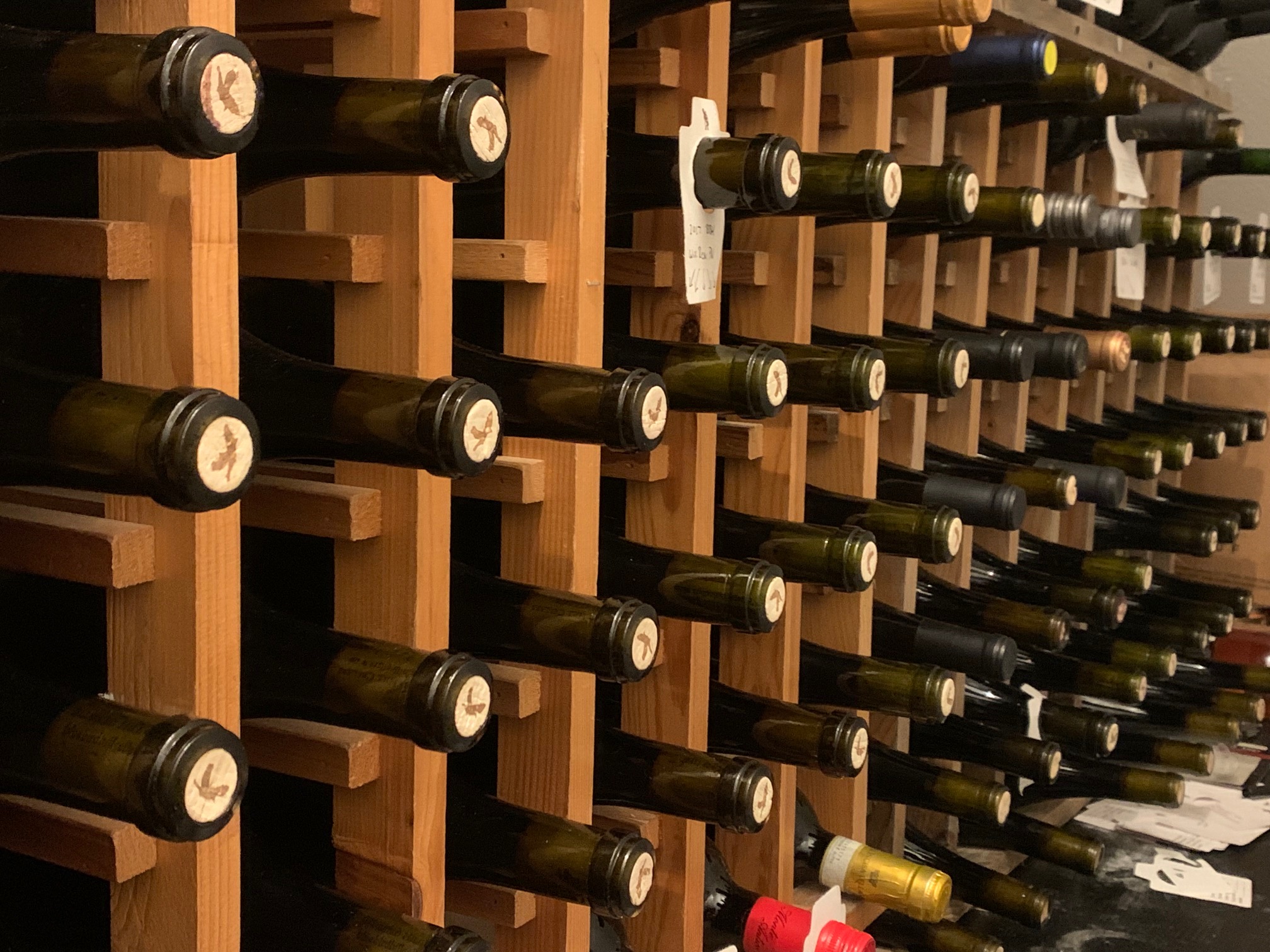 It’s the season for giving thanks, and on our end, it turned out to happen via a somewhat peculiar and roundabout way: this fall we had to do a significant plumbing repair, a long section of our main water supply line was starting to develop leaks, and we had to expose about forty or more feet of pipe. To get the repair done, we had to rip out a fair amount of sheetrock in our main tasting room and a large closet to allow the plumbers to get at the pipe and do their thing. We had been using that closet for our own personal wine collection, and we had to remove ALL the bottles (several hundred, at least) and remove several wine racks from the wall to get at the sheetrock. For quite a while, we had to work around wine boxes and wine racks in the middle of our main tasting room area, but finally, this past week, the repair was completed, and we got our chance to repair the wallboard, reinstall the wine racks, and then unpack our wine out of the boxes and get them back into the racks.