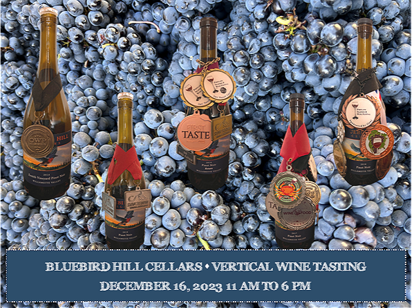 Bluebird Hill Cellars at the Newport Seafood and Wine Festival/Newport February 22-25, 2024 Bluebird Hill Cellars at the Portland Seafood and Wine Festival/Portland March 1-3, 2024 Bluebird Hill Cellars at the McMinnville Food & Wine Classic/McMinnville March 8-10, 2024 Bluebird Hill Cellars at the Astoria Crab, Seafood & Wine Festival/Astoria April 26-28, 2024 BLACK FRIDAY SPECIALS: